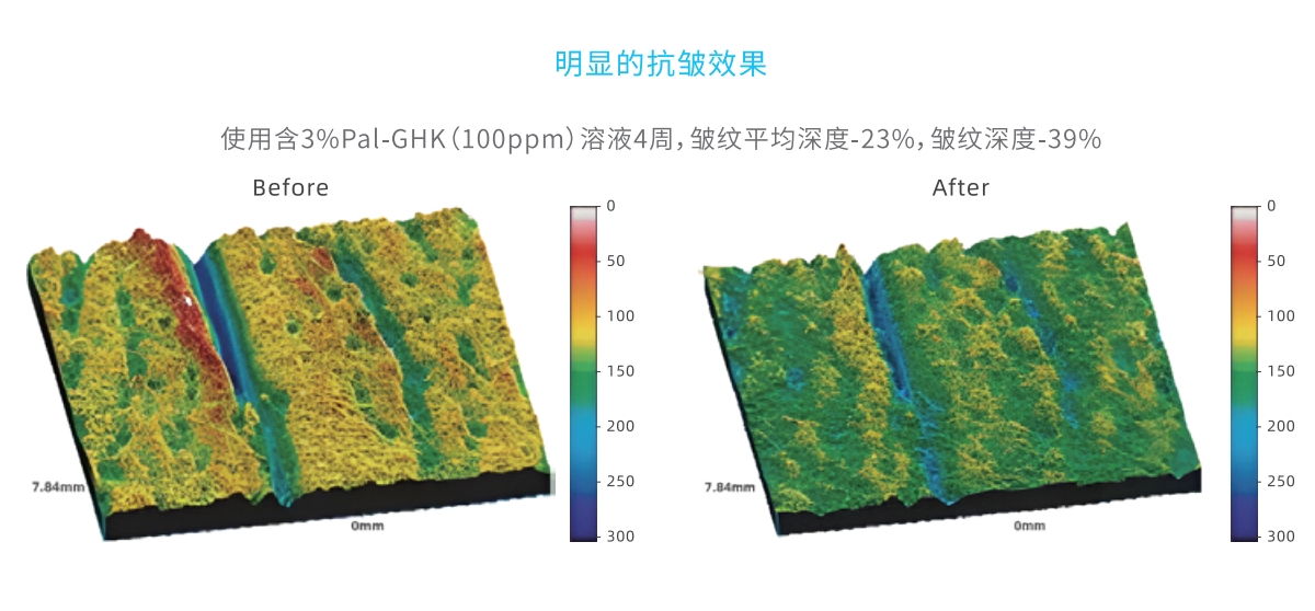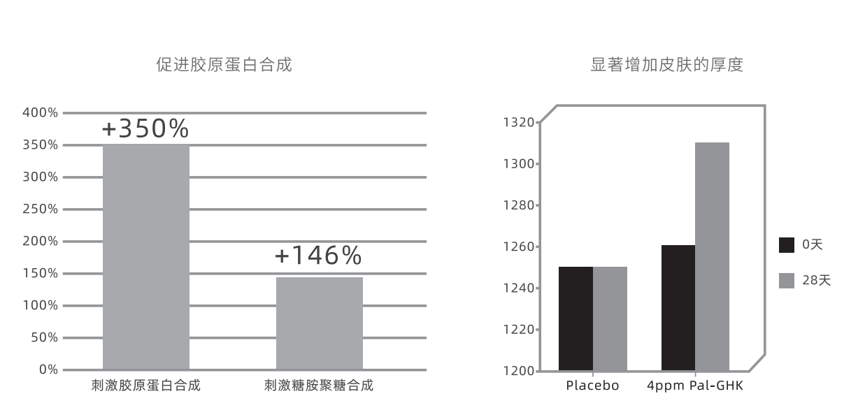 - 促进胶原蛋白及糖胺聚糖的生产,增加肌肤紧实度和厚度,减少皱纹